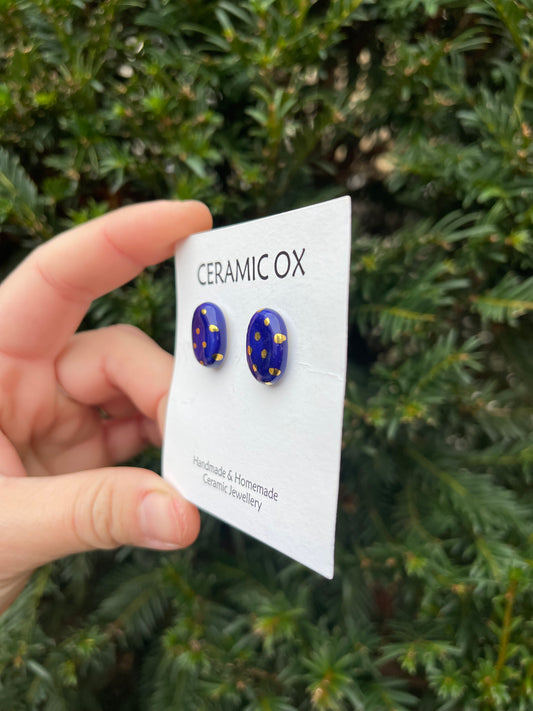 Cobalt oval rounded studs with gold dots
