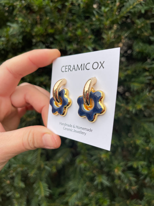 Navy flower hoops