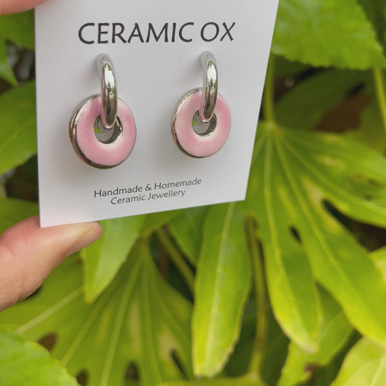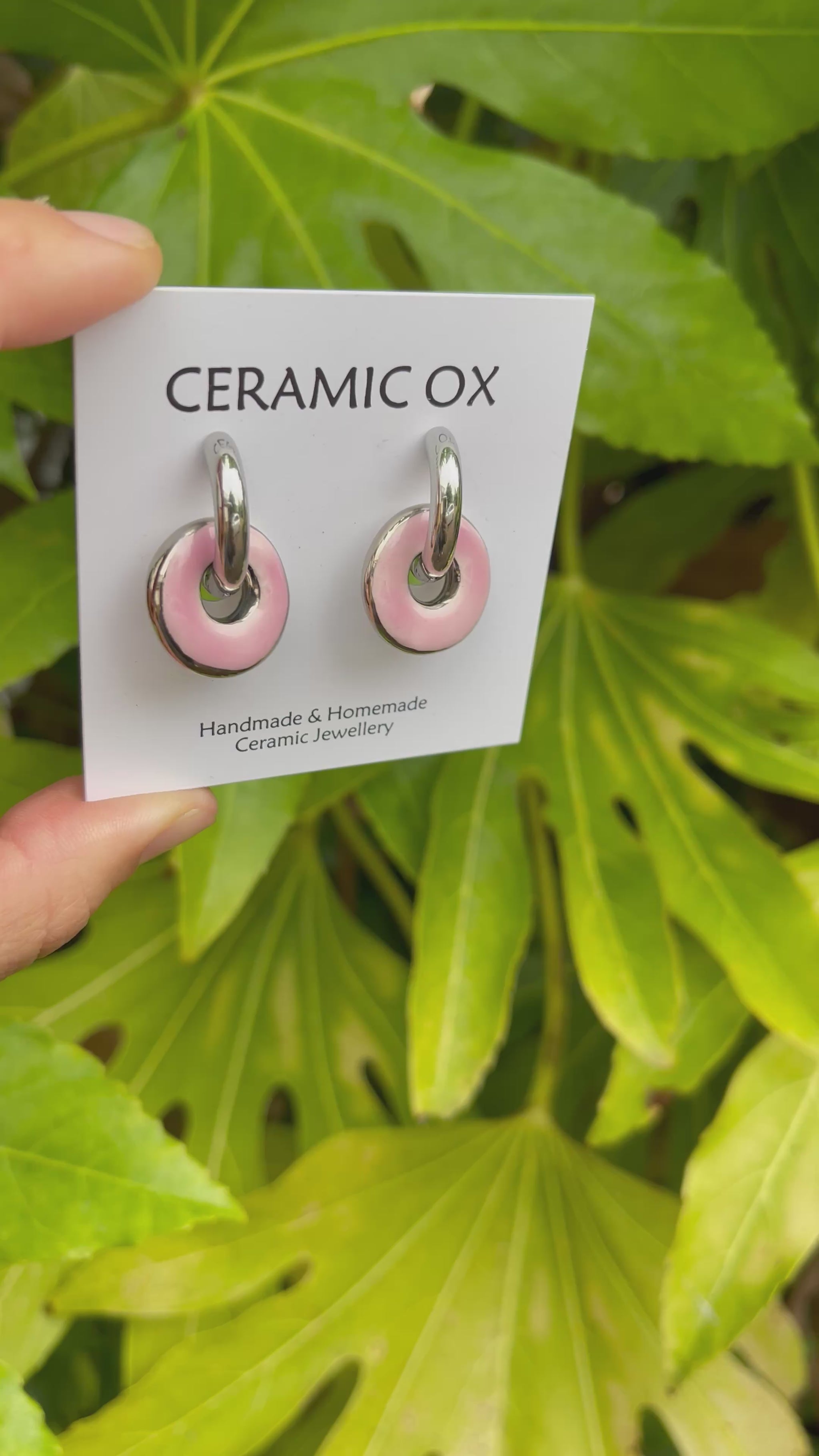 Handmade, homemade, ceramic earrings. Glazed high fire earthenware ceramic earrings fired at over 1100 Celsius with Platinum silver lustre design.