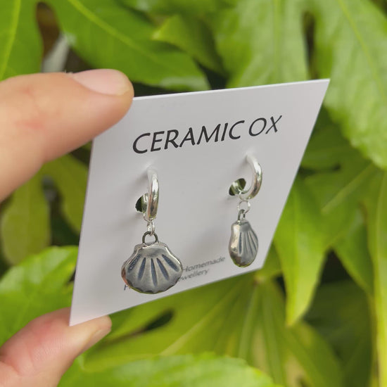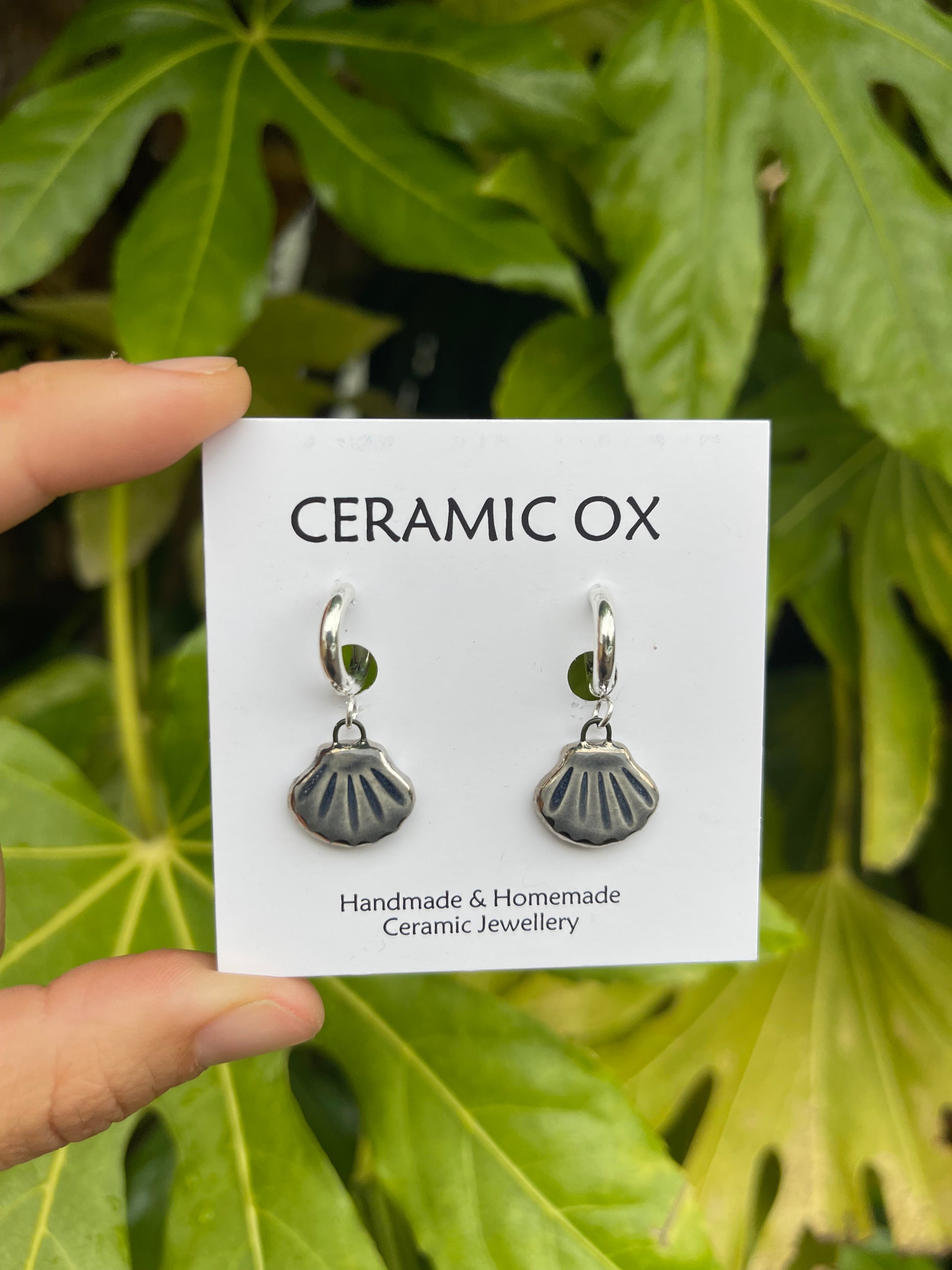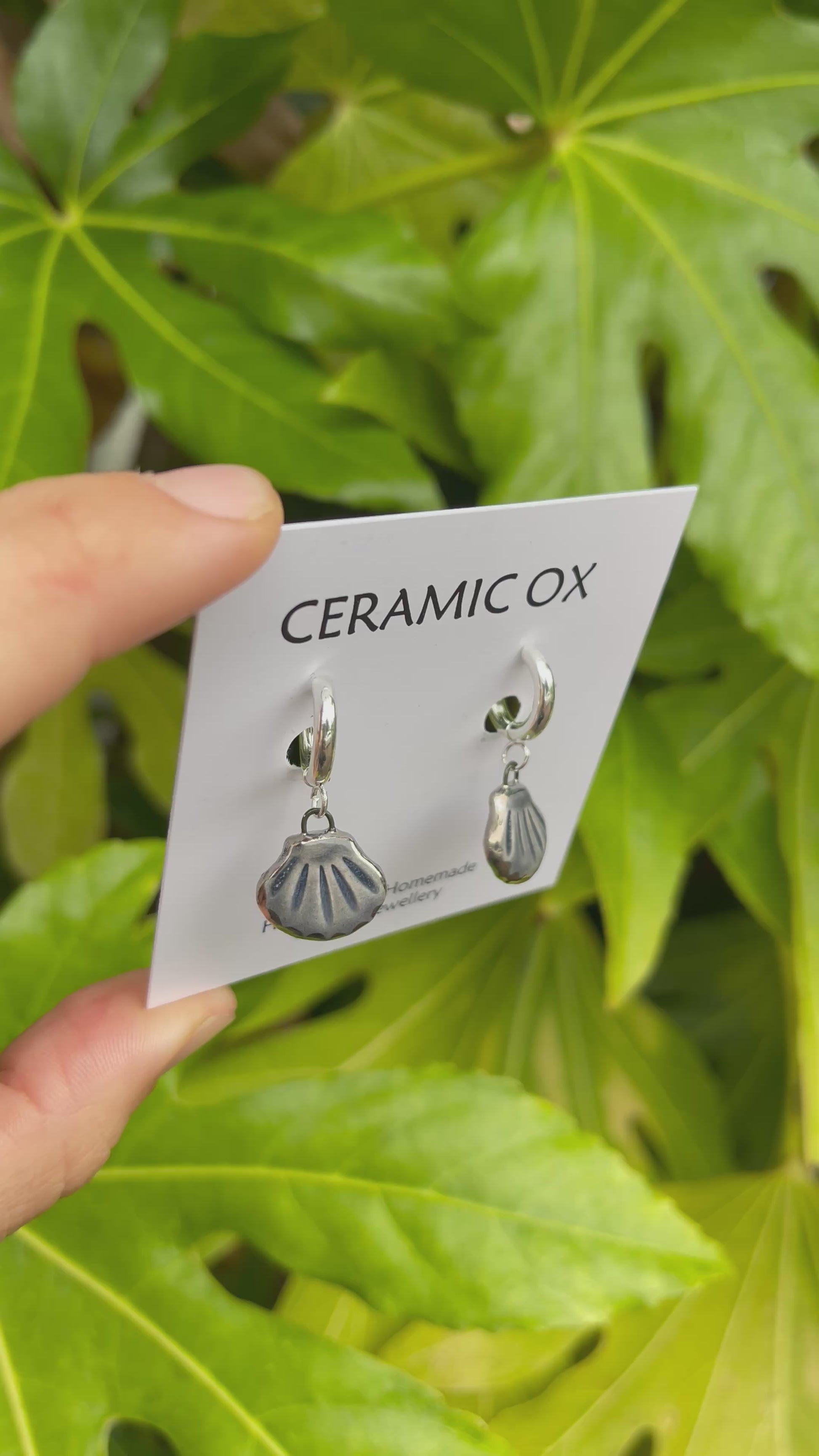 Handmade, homemade, ceramic earrings. Glazed high fire earthenware ceramic earrings fired at over 1100 Celsius with Platinum silver lustre design.