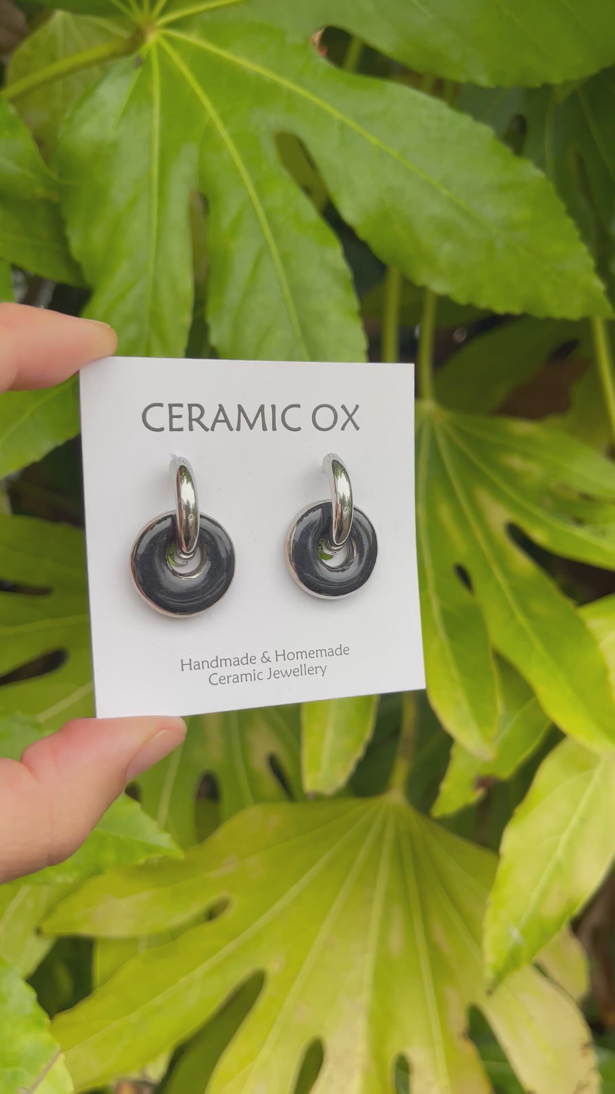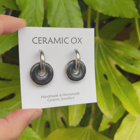 Handmade, homemade, ceramic earrings. Glazed high fire earthenware ceramic earrings fired at over 1100 Celsius with Platinum silver lustre design.
