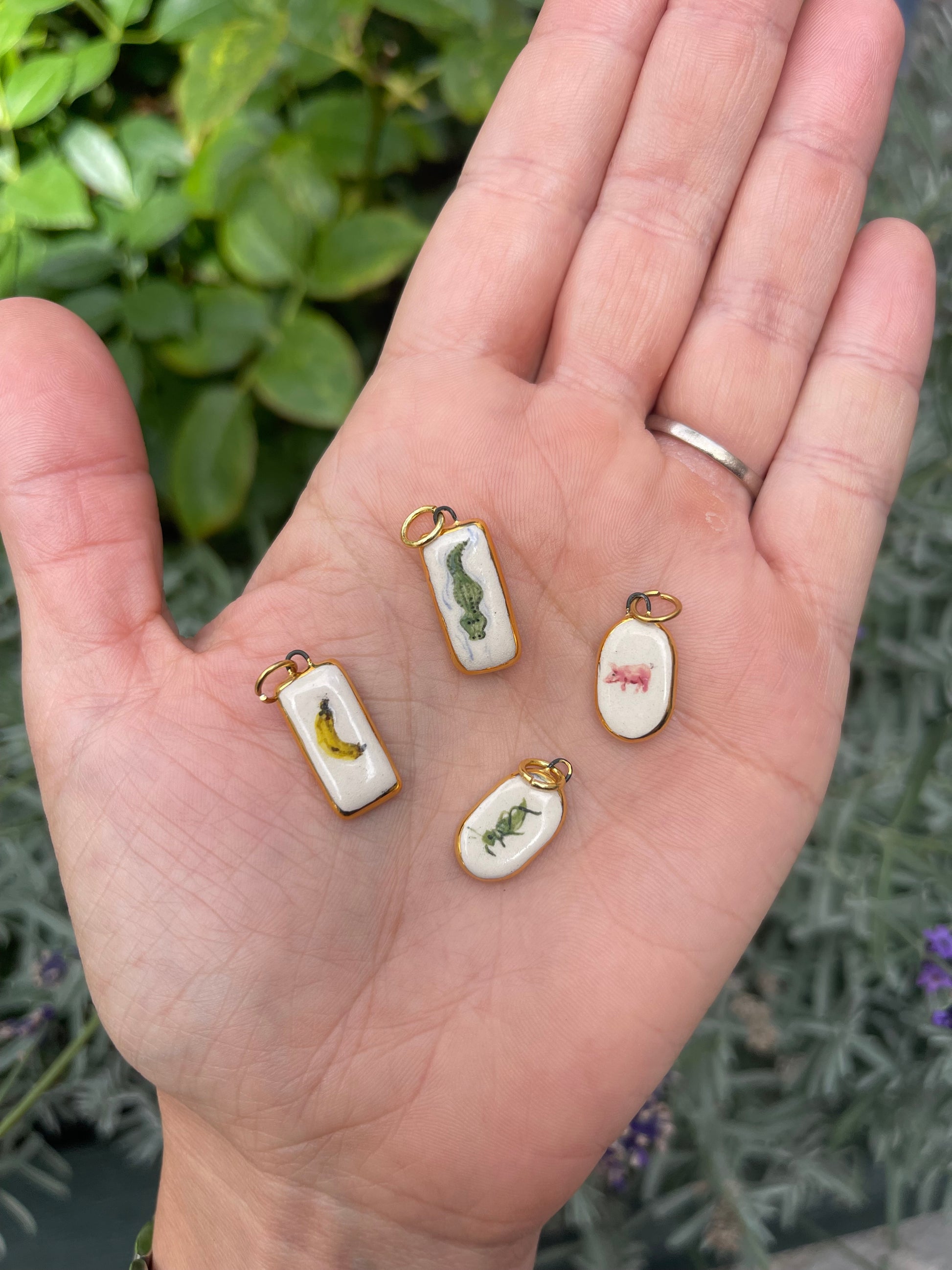 Choose your painting! Hand painted ceramic pendant charm. Double sided, glazed high fire earthenware ceramics fired at over 1050C with 24k gold lustre design.
