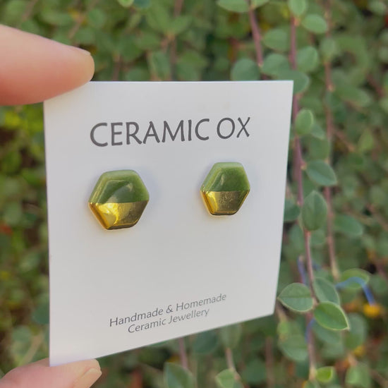 Hexagon studs in Velvet Green