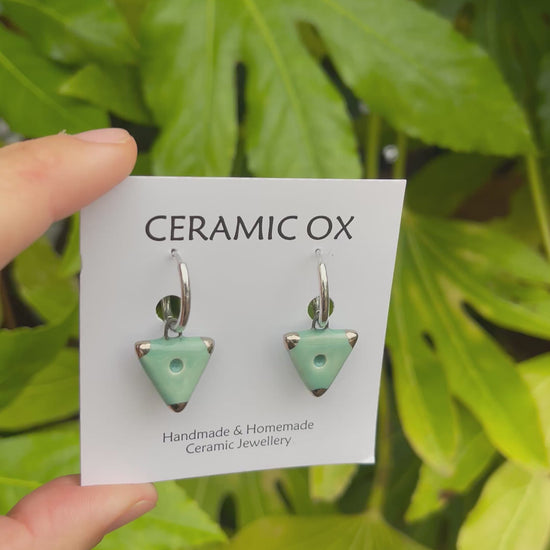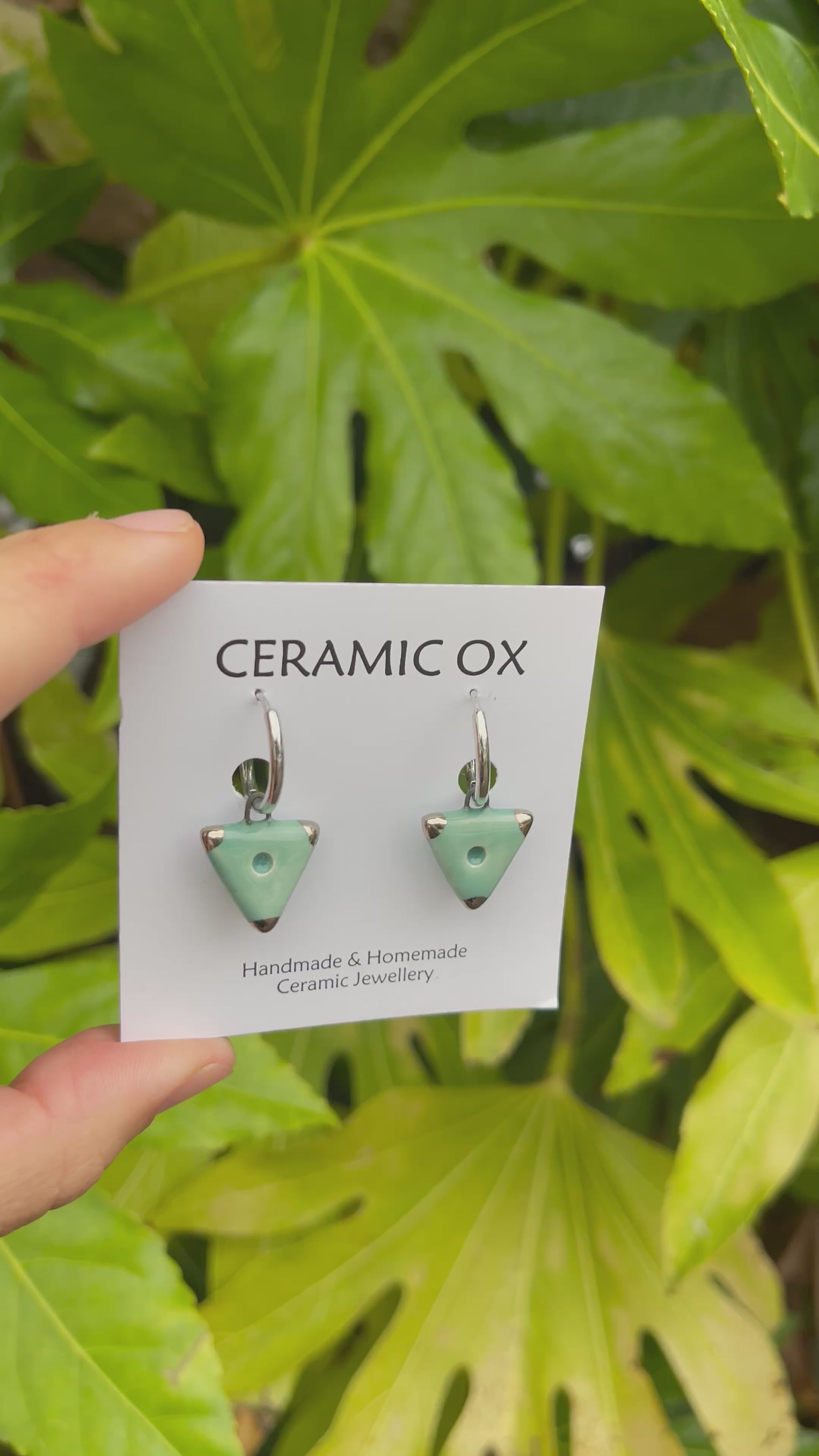 Handmade, homemade, ceramic earrings. Glazed high fire earthenware ceramic earrings fired at over 1100 Celsius with Platinum silver lustre design.