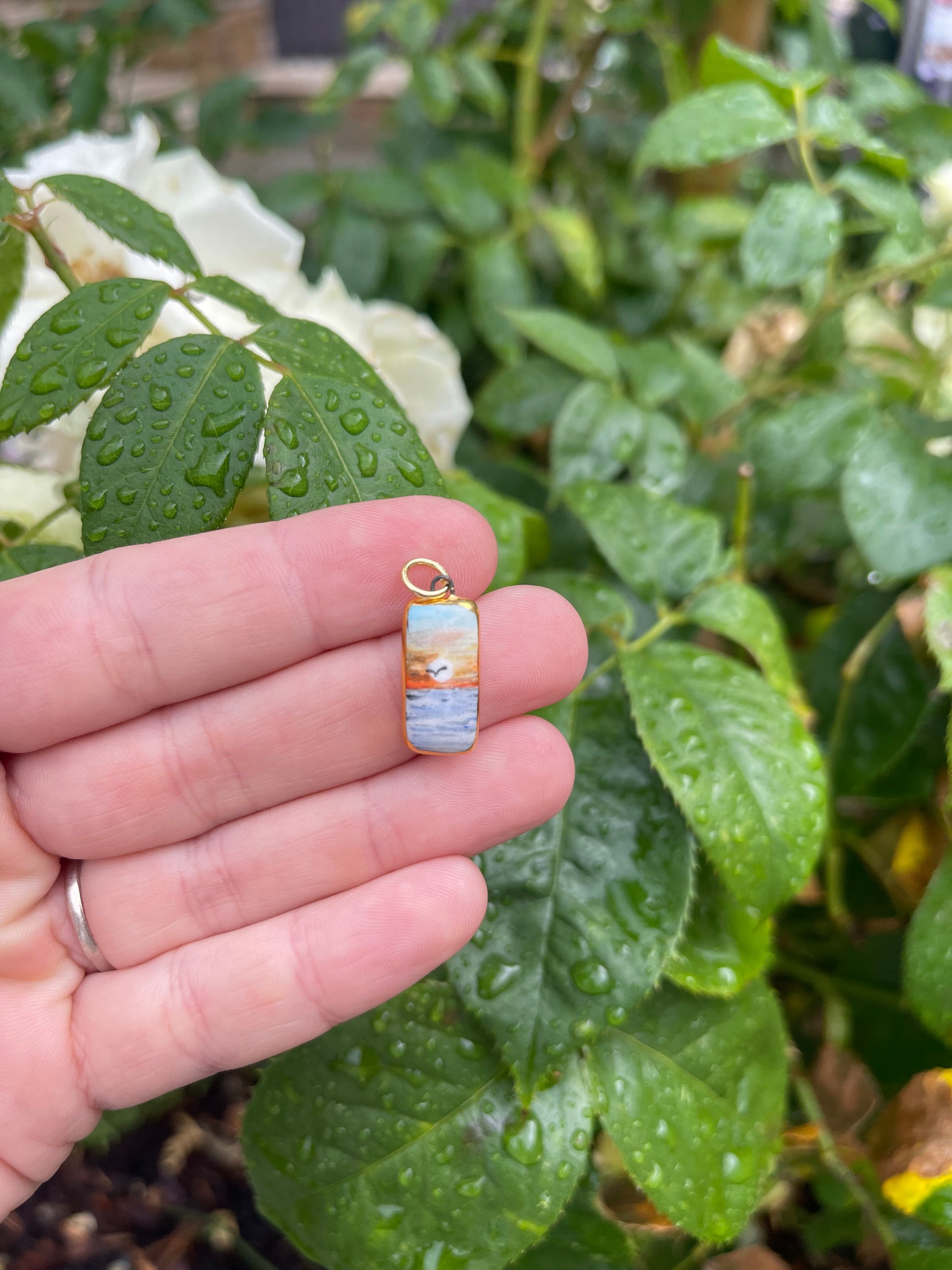 Hand painted ceramic charm. Glazed high fire earthenware ceramic charm fired at over 1100 with 24k gold lustre design.