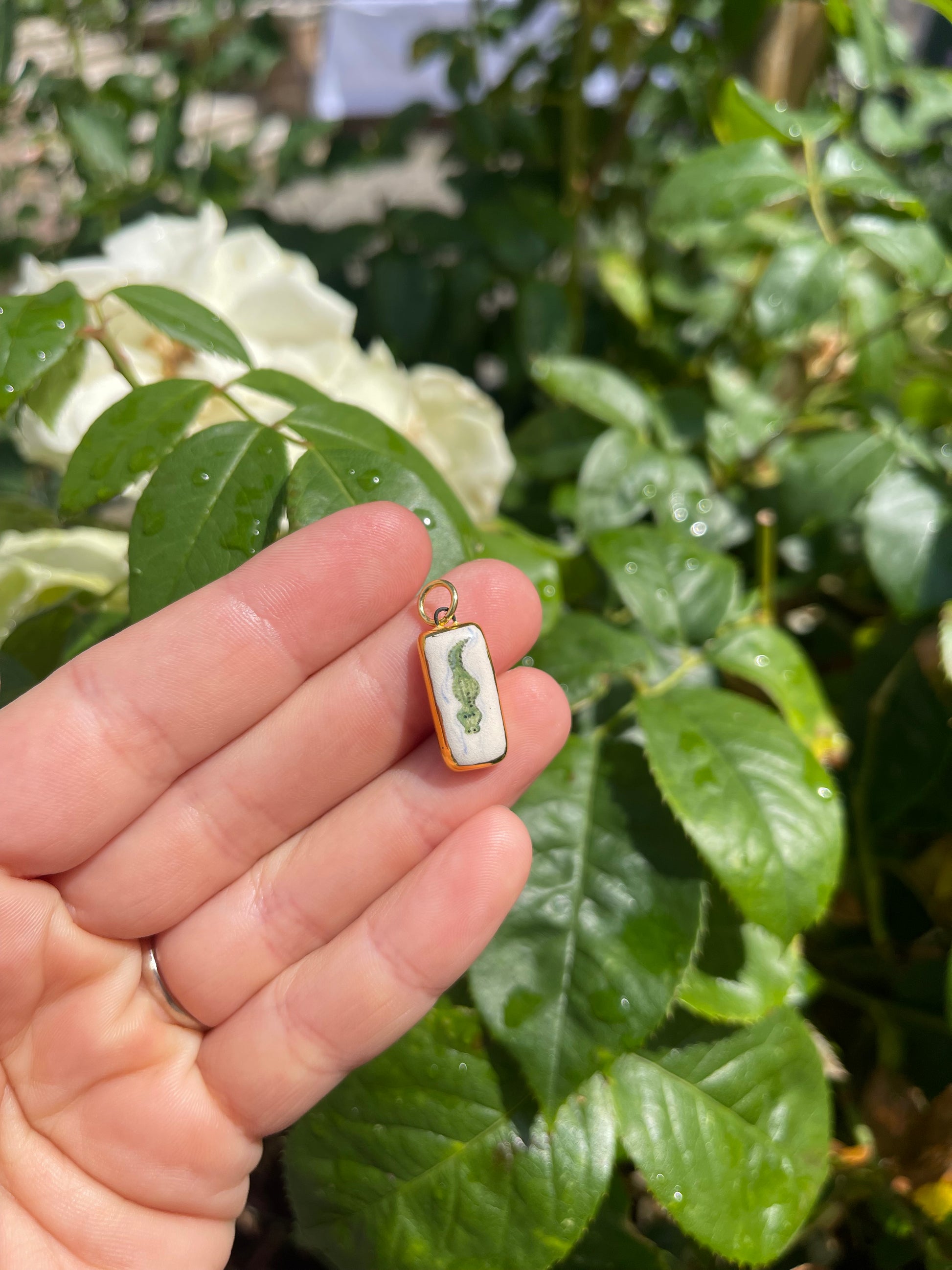 Hand painted ceramic charm. Glazed high fire earthenware ceramic charm fired at over 1100 with 24k gold lustre design.