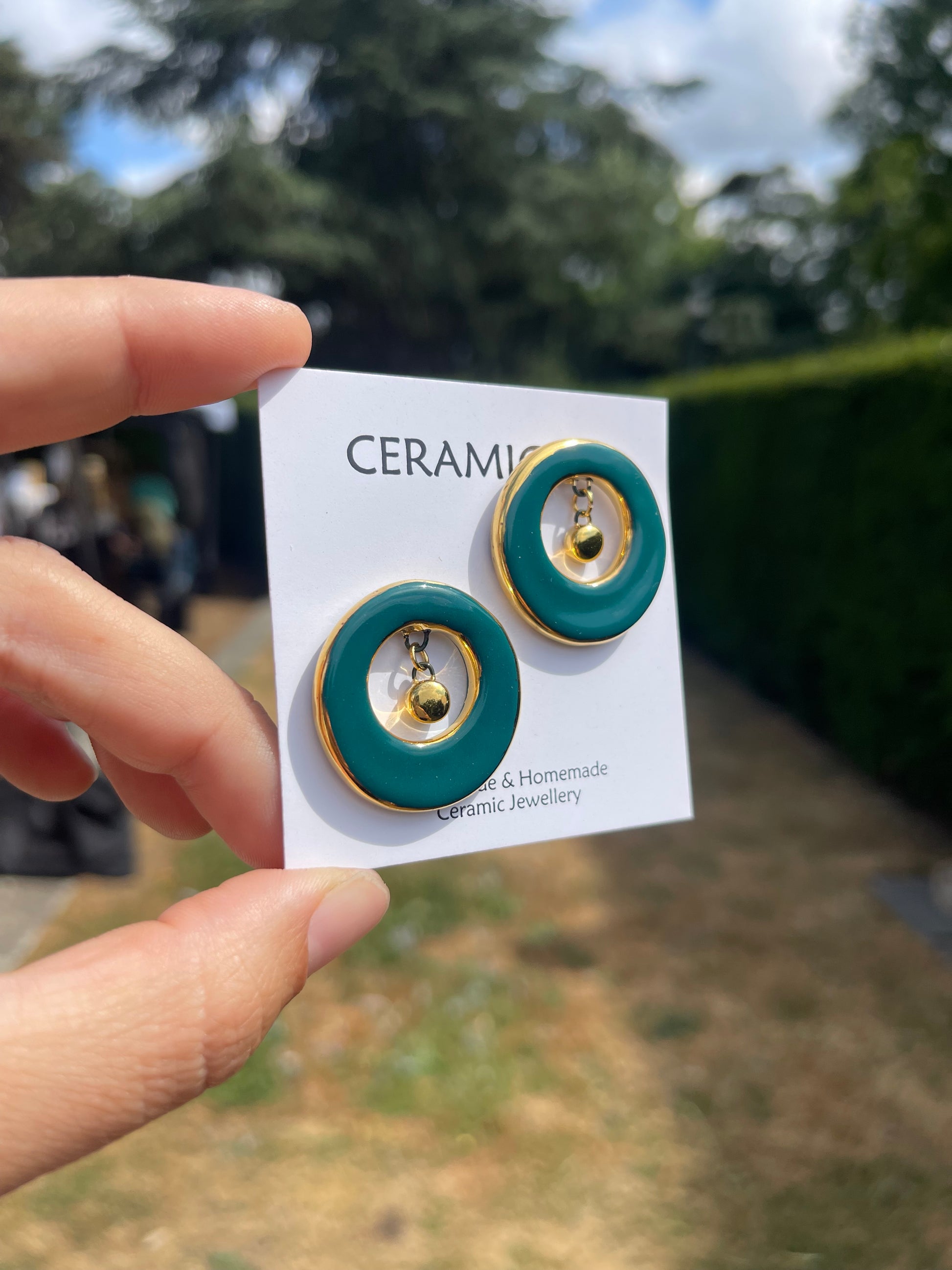 Teal studs with ceramic dangle