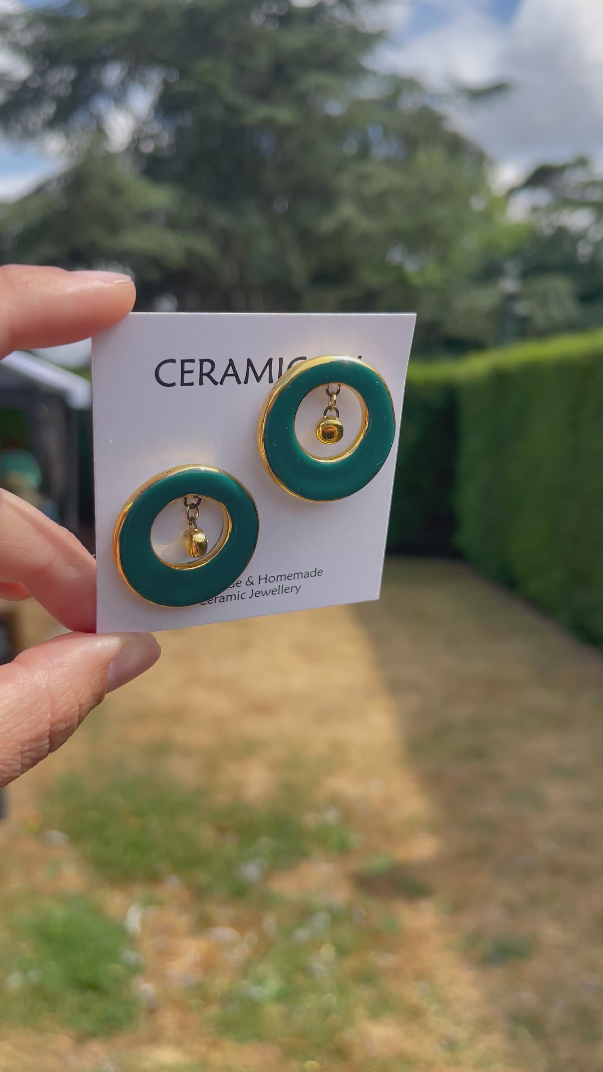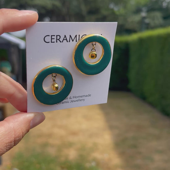 Handmade, homemade, ceramic earrings. Glazed high fire earthenware ceramic earrings fired at over 1100 with 24k gold lustre design.