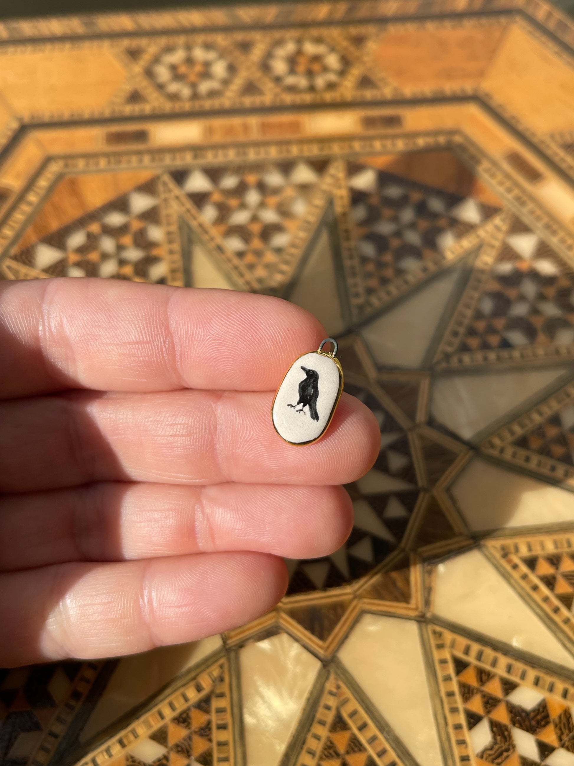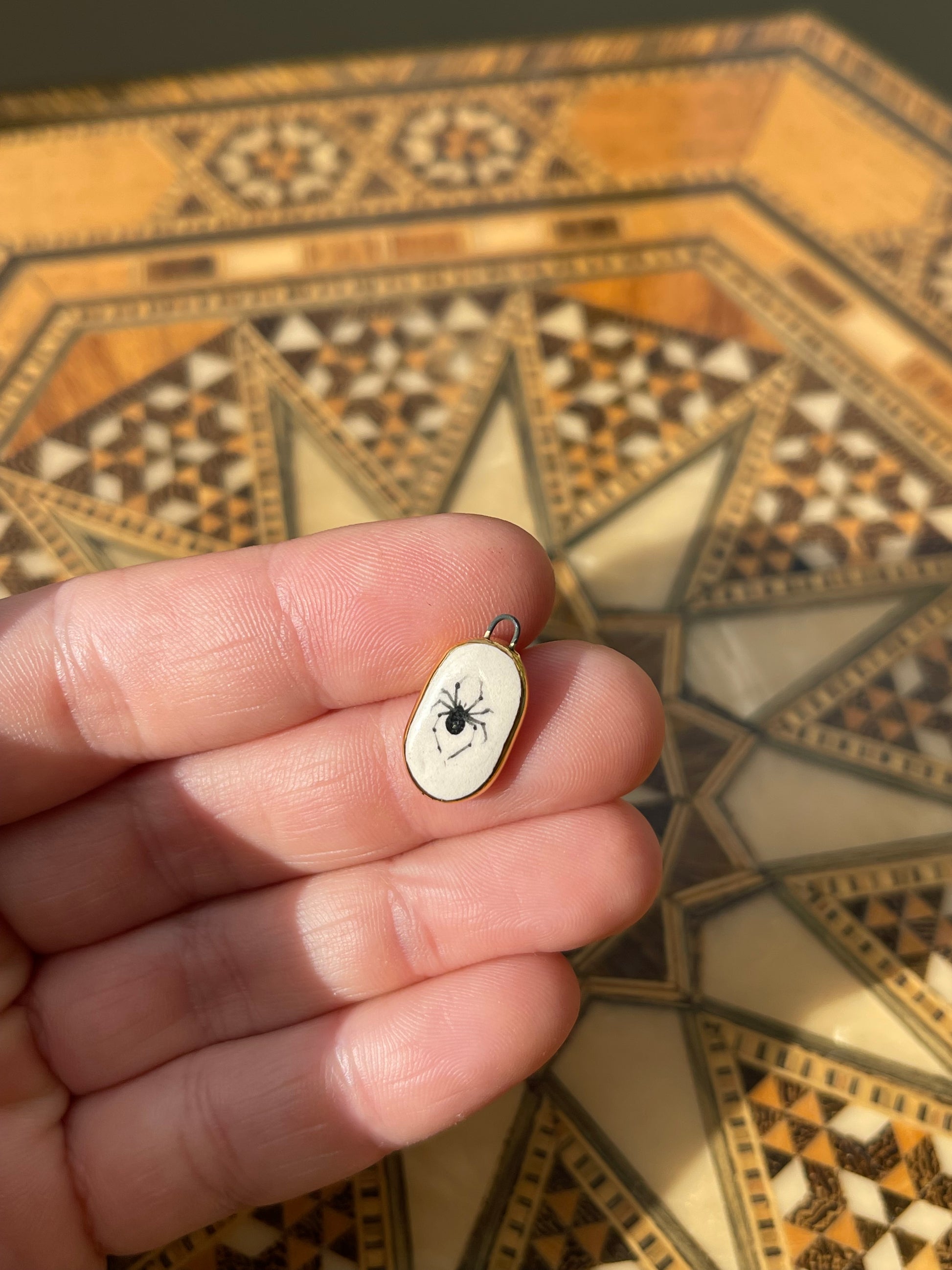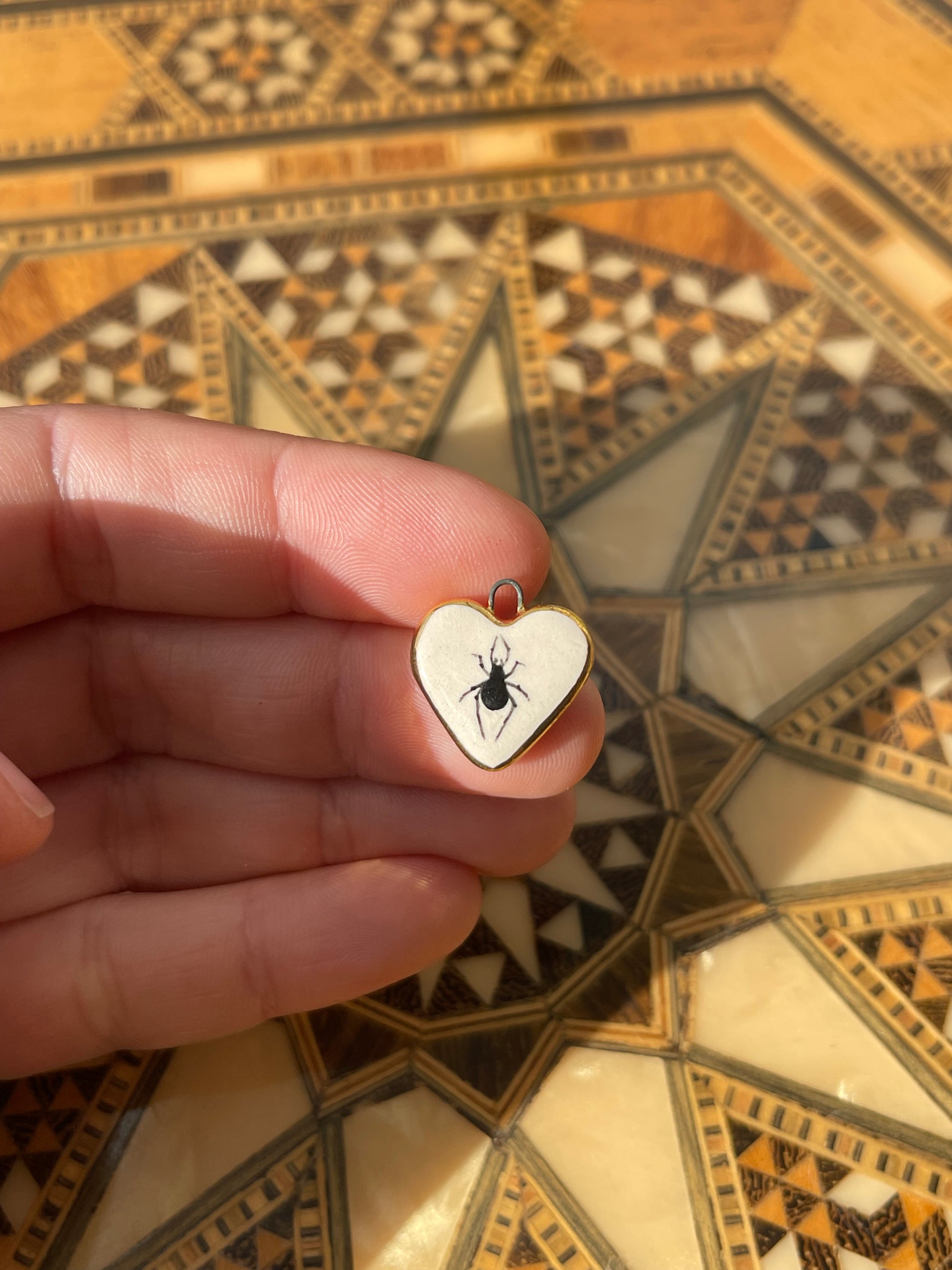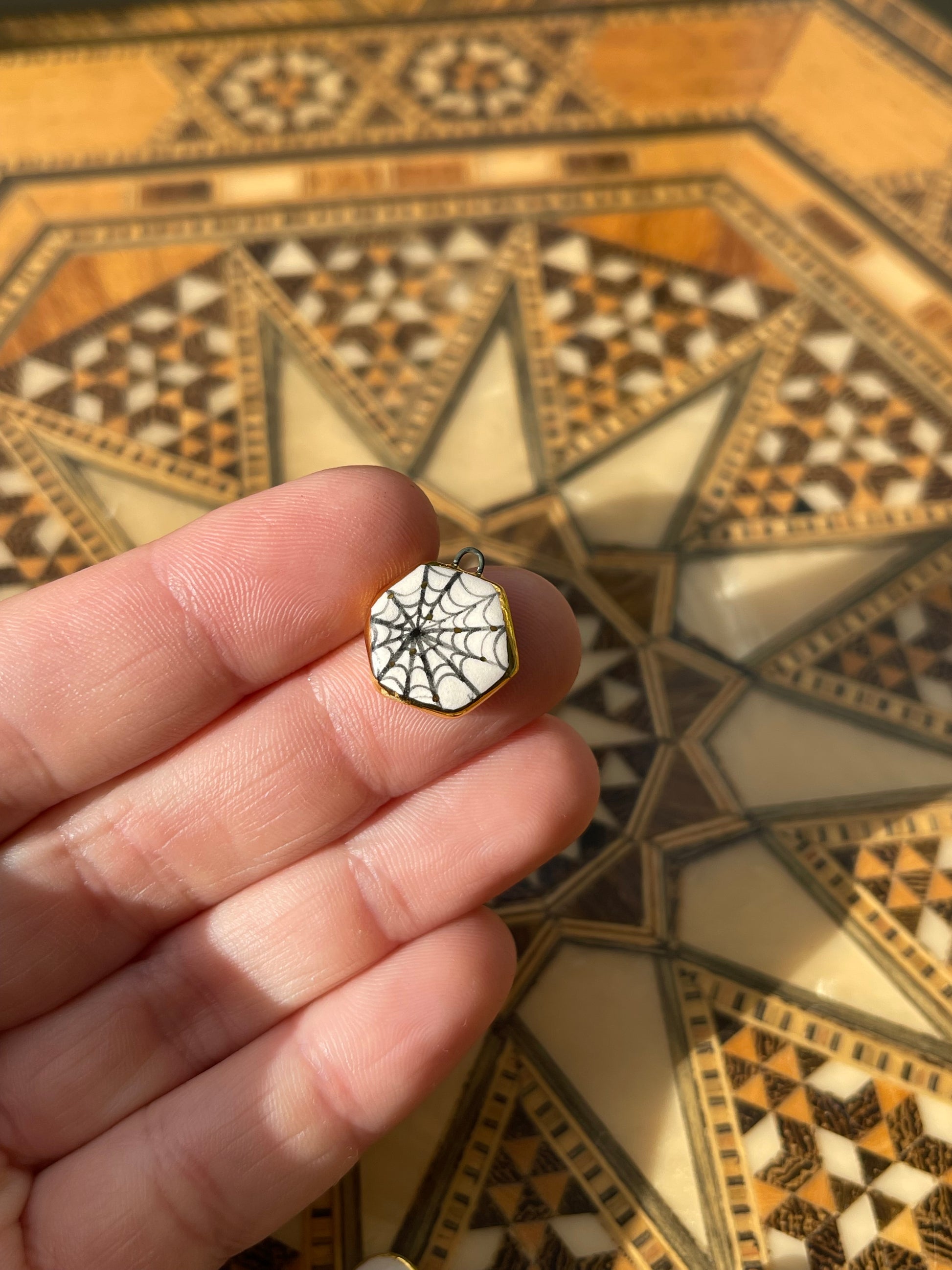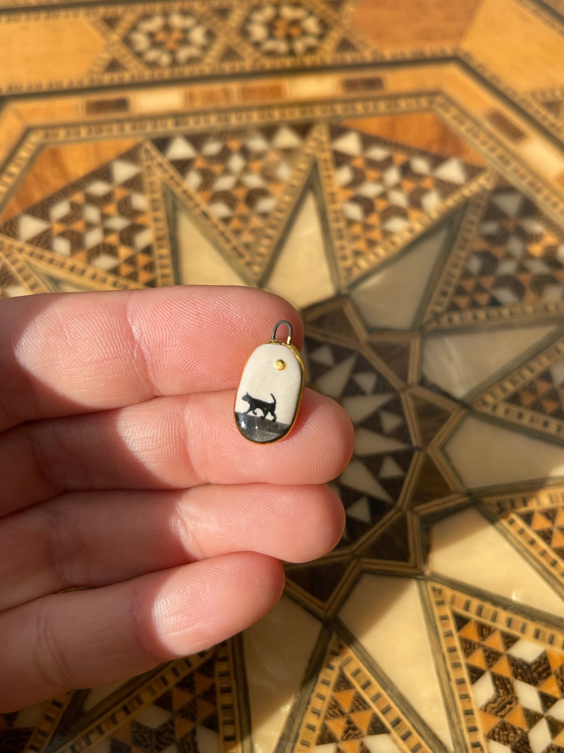 Hand painted ceramic pendant charm. Double sided, glazed high fire earthenware ceramics fired at over 1050C with 24k gold lustre design.